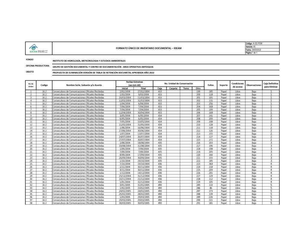 Eliminación de documentos por vigencia según el tiempo de retención del Archivo Central Dando cumplimiento a lo estipulado en el artículo 22 del Acuerdo 04 de 2019 del AGN, el...
