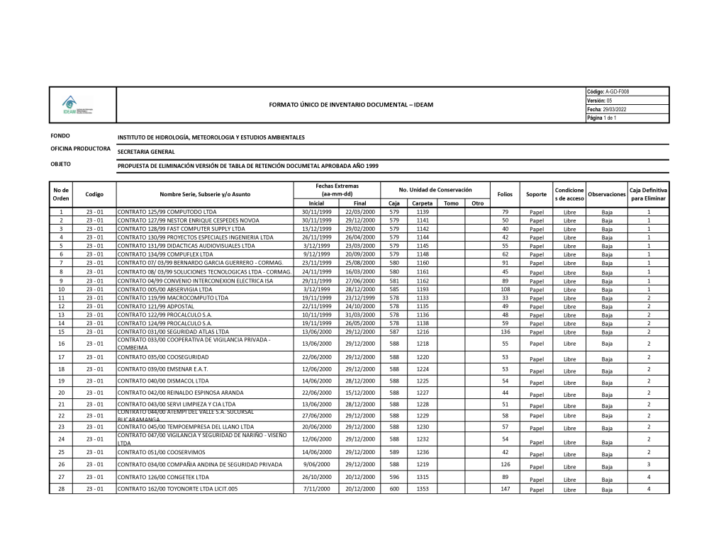 Eliminación de documentos por vigencia según el tiempo de retención del Archivo Central Dando cumplimiento a lo estipulado en el artículo 22 del Acuerdo 04 de 2019 del AGN, el...