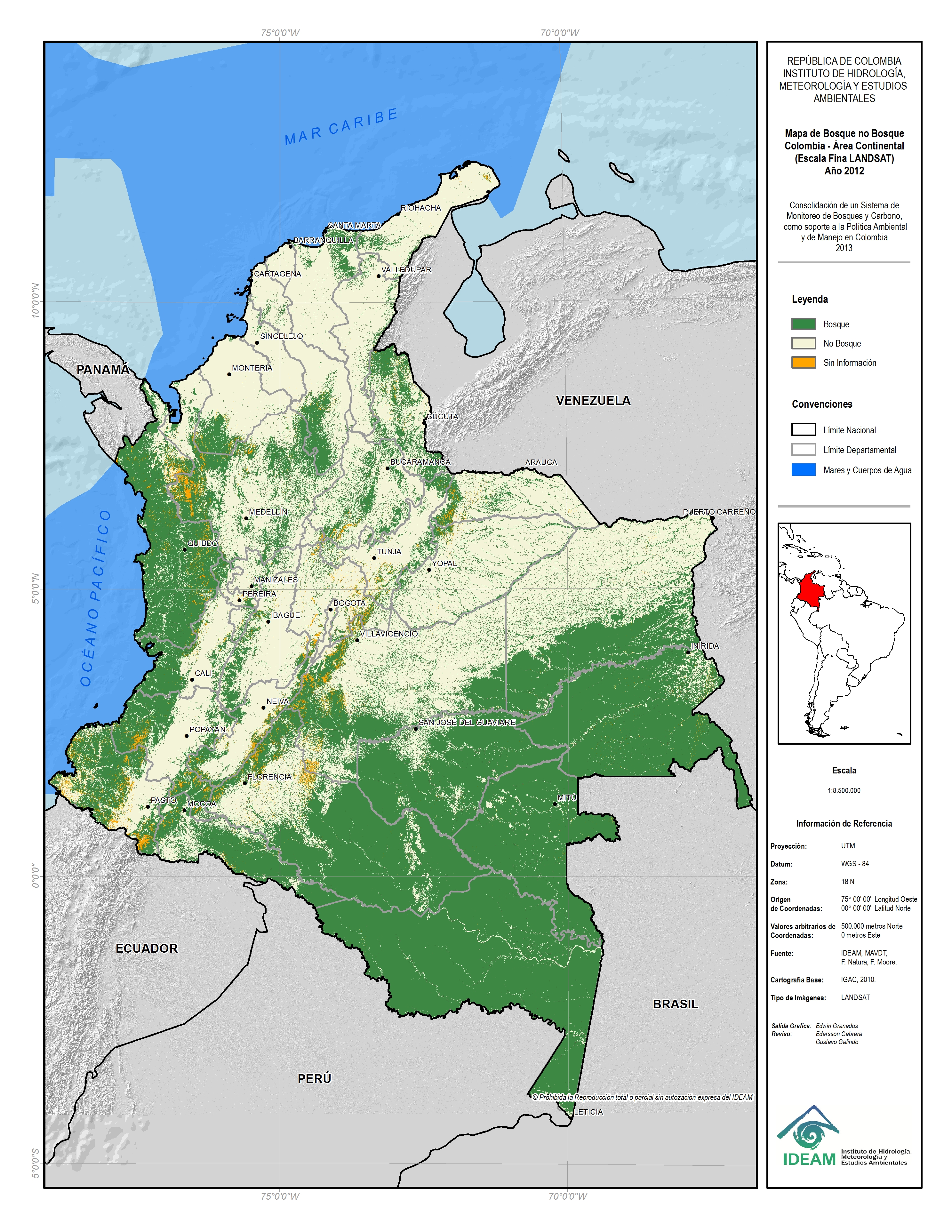- Mapa de Bosque No Bosque Colombia - Área Continental Año 2012