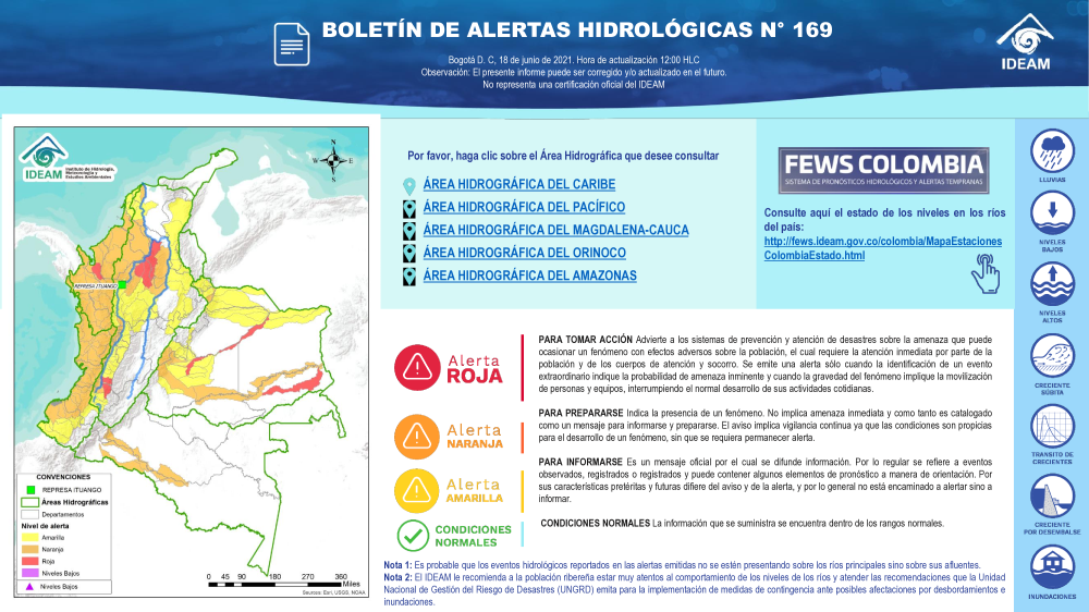 En general, el seguimiento que hace el Ideam del comportamiento hidrológico en los principales ríos del país se realiza con la información horaria en tiempo real que se recibe de las estaciones automáticas, complementadas con más de 40 estaciones hidrológicas que transmiten en las primeras horas cada mañana, los 365 días del año.