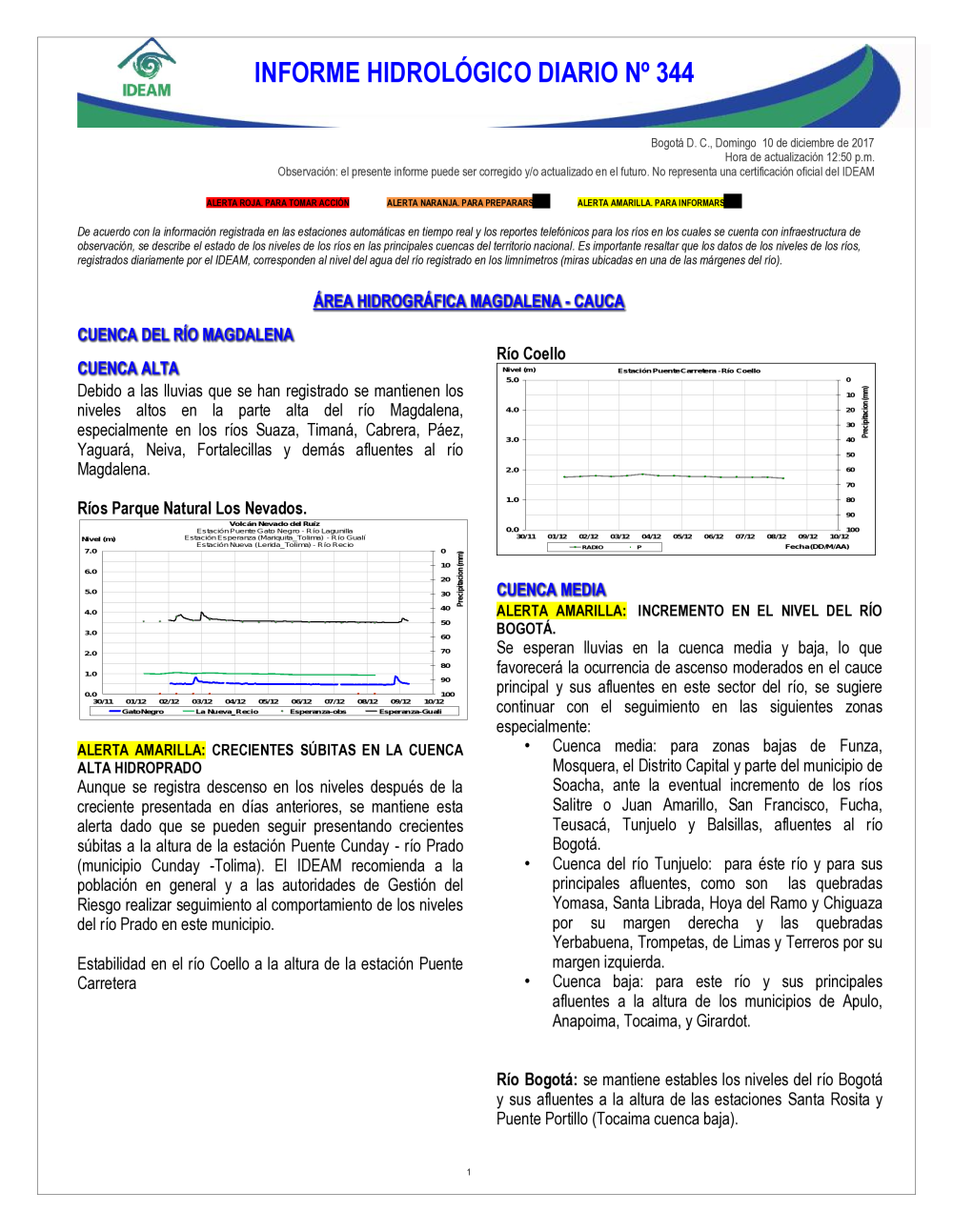 En general, el seguimiento que hace el Ideam del comportamiento hidrológico en los principales ríos del país se realiza con la información horaria en tiempo real que se recibe de las estaciones automáticas, complementadas con más de 40 estaciones hidrológicas que transmiten en las primeras horas cada mañana, los 365 días del año.