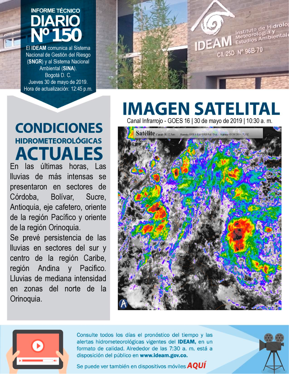 El IDEAM, pone a disposición del Sistema Nacional para la Prevención y Atención de Desastres (SNPAD), el Sistema Nacional Ambiental (SINA) y la comunidad en general, el informe técnico diario de alertas ambientales de origen hidrometeorológico; de Igual manera, se pueden consultar los informes anteriores. En caso de eventos extraordinarios que puedan ser detectados por nuestra red ambiental, se publicará un comunicado especial. Se debe tener en cuenta que esta es una información indicativa de orden nacional; para situaciones puntuales favor remitirse a los comunicados que emitan los Comités Locales y Regionales de Prevención y Atención de Desastres.