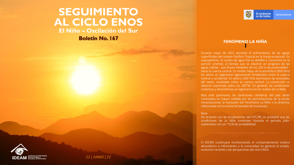 BOLETÍN DE MONITOREO FENOMENO EL NIÑO Y LA NIÑA