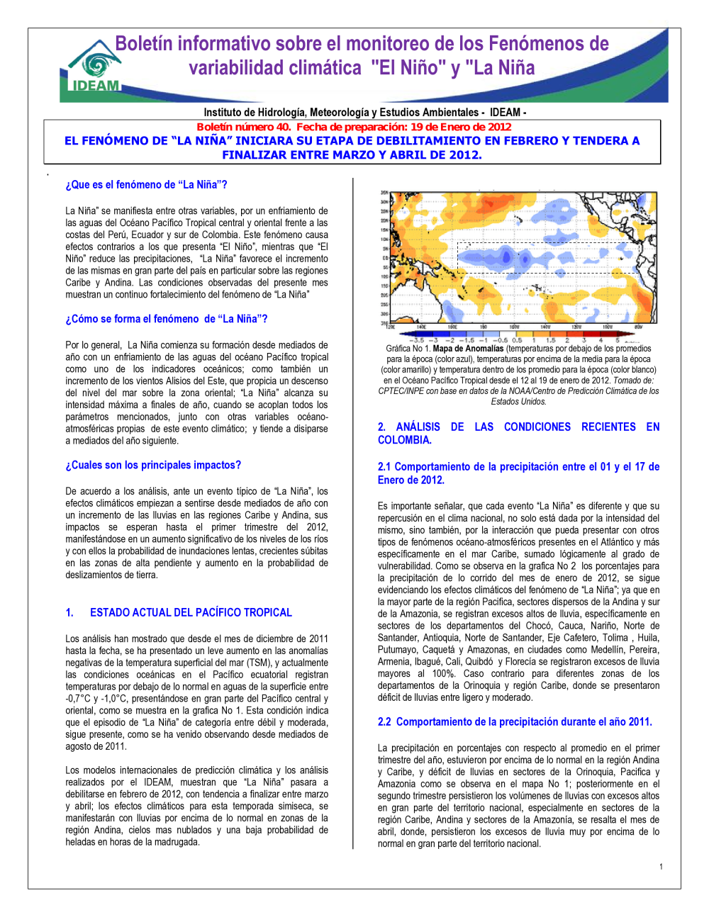 BOLETÍN DE MONITOREO FENOMENO EL NIÑO Y LA NIÑA