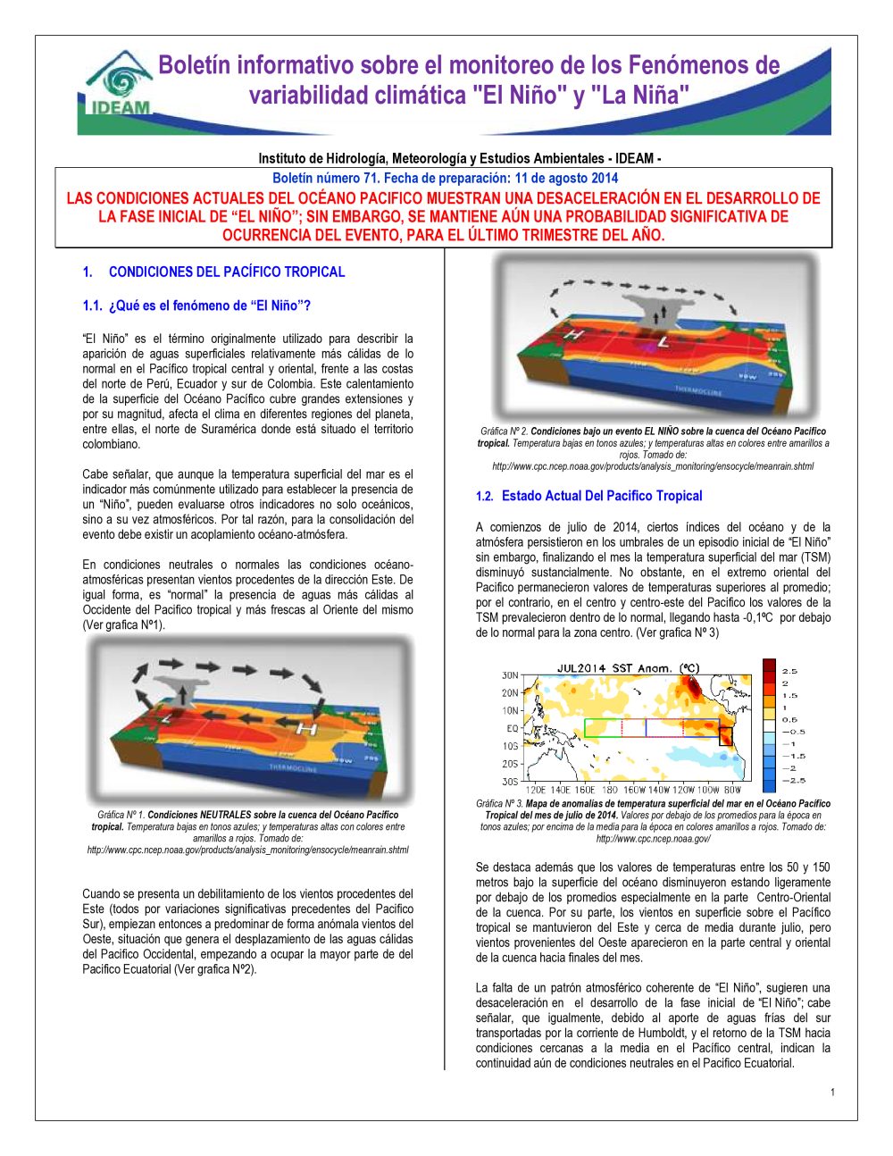 BOLETÍN DE MONITOREO FENOMENO EL NIÑO Y LA NIÑA