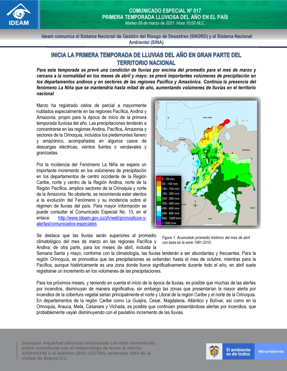 COMUNICADO ESPECIAL N°017 ACTUALIZACION PRIMERA TEMPORADA LLUVIOSA DEL AÑO 2021.pdf