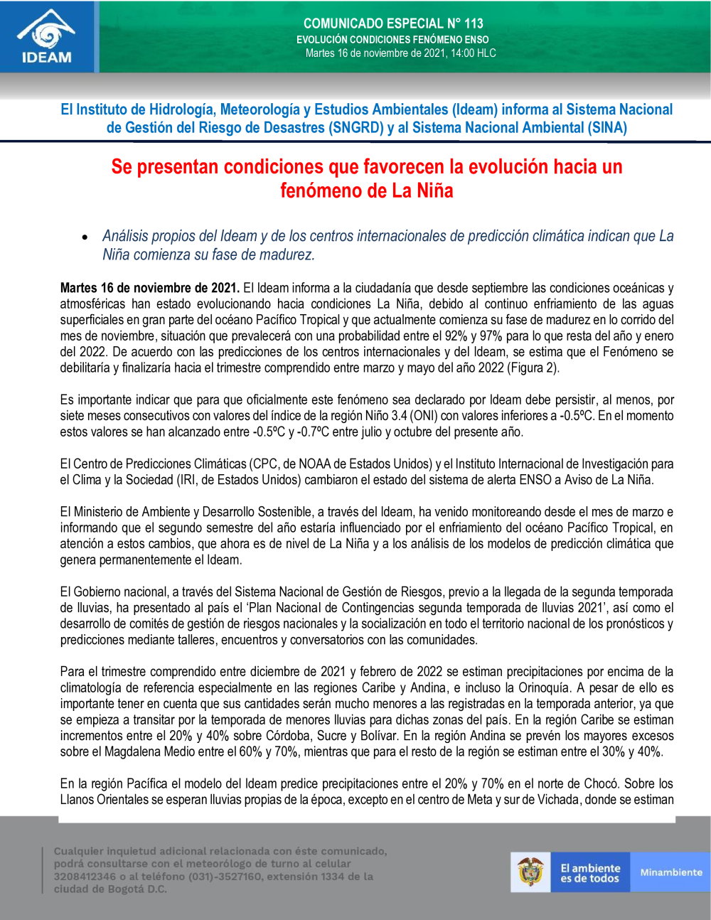 COMUNICADO ESPECIAL N°113