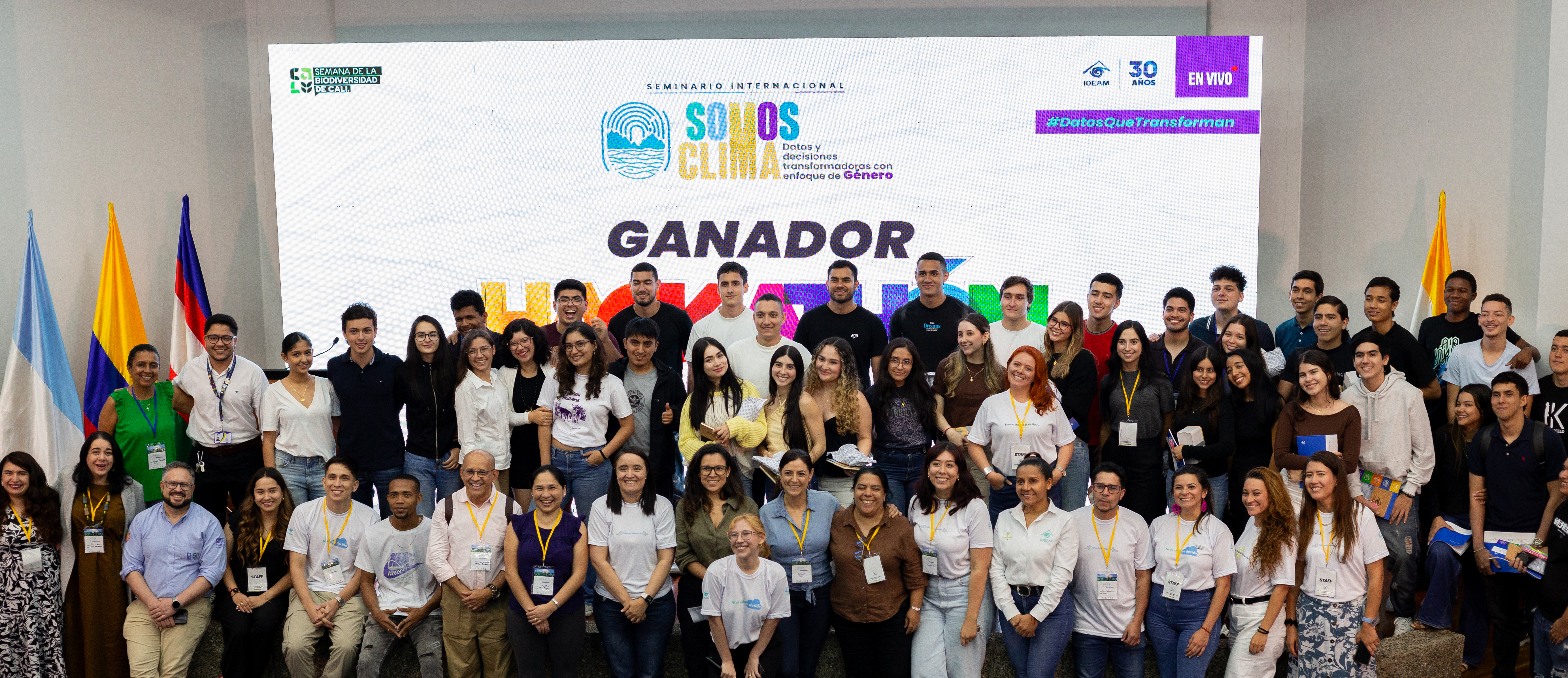 El Seminario Internacional Somos Clima: Datos y decisiones transformadoras con enfoque de género culminó en la ciudad de Cali consolidándose como un hito en la agenda nacional e internacional de transparencia climática. El encuentro, realizado en el Auditorio Almendros de la Pontificia Universidad Javeriana de Cali, congregó durante dos días a representantes del Gobierno nacional, la academia, la cooperación internacional, la sociedad civil, y a más de un centenar de jóvenes que participaron activamente en los debates y actividades.