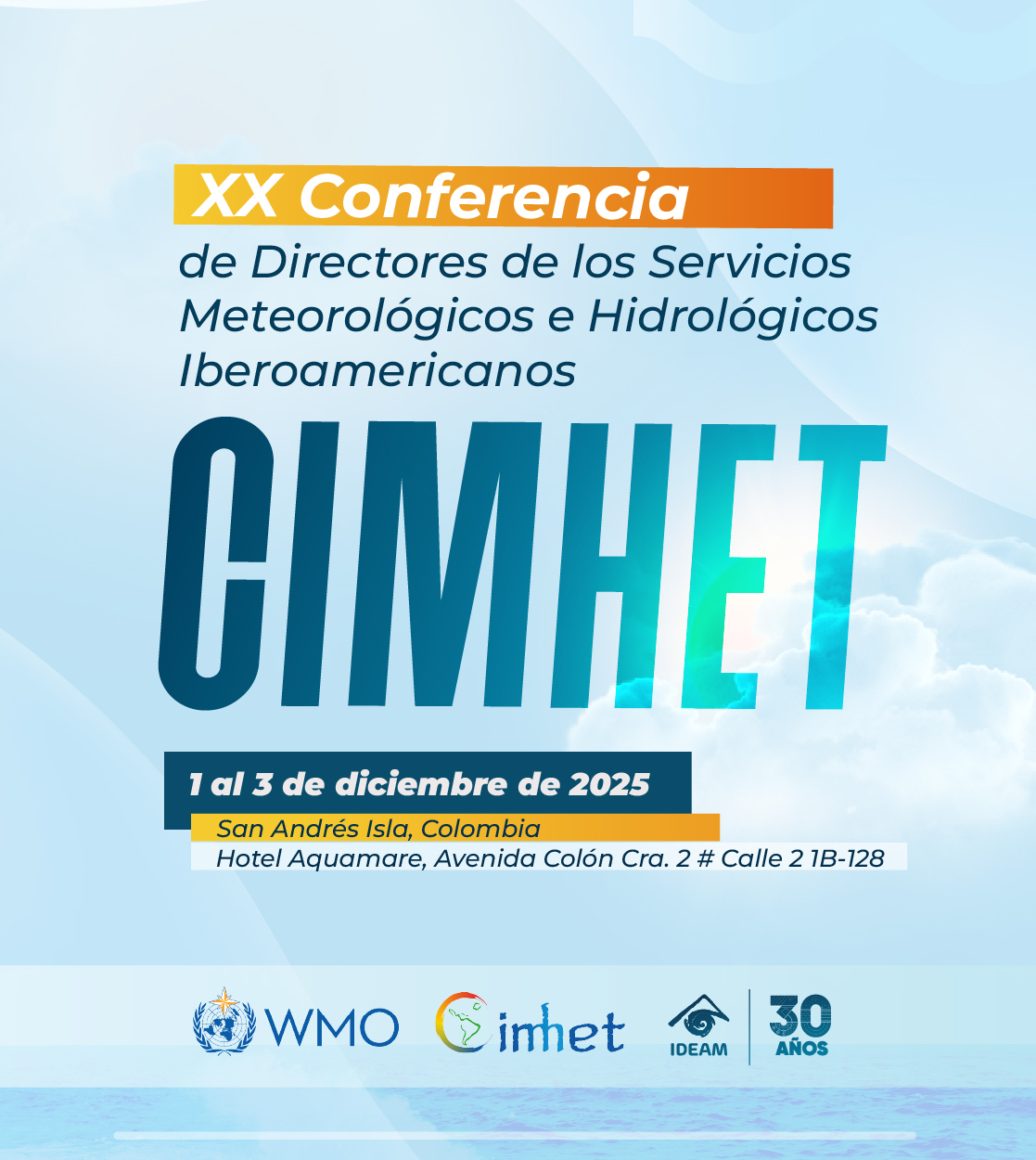 Colombia recibe a los delegados de 16 países iberoamericanos en la Reunión de la Conferencia de los Servicios Meteorológicos e Hidrológicos Nacionales Iberoamericanos (CIMHET). Este espacio reúne a los Servicios Meteorológicos e Hidrológicos de España , Bolivia, Brasil, Chile, Colombia, Costa Rica, Cuba, República Dominicana, El Salvador, Honduras, México, Panamá, Paraguay, Portugal, Uruguay, Venezuela.