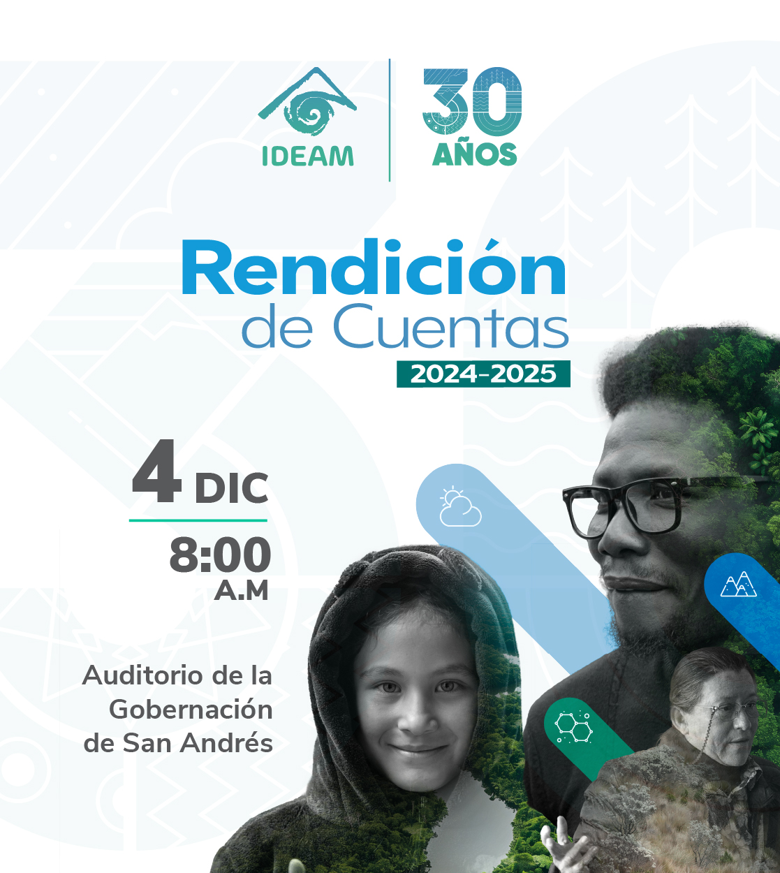 En el marco de esta normatividad, el Instituto de Hidrología, Meteorología y Estudios Ambientales (IDEAM) desarrollará su audiencia pública de rendición de cuentas como parte de la Estrategia de Rendición de Cuentas 2025, concebida con un enfoque descentralizado para fortalecer la participación de los territorios.