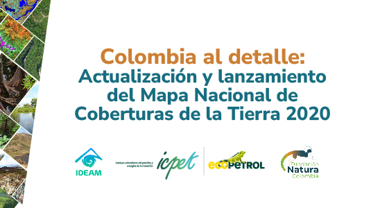 El Ideam, Ecopetrol y la Fundación Natura invitan al evento "Colombia al detalle: actualización y lanzamiento del Mapa Nacional de Coberturas de la Tierra 2020", en el cuál se realizará el panel "Nuestro país en cambio: transformaciones del paisaje y la pertinencia de un sistema de monitoreo de coberturas de la tierra".